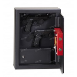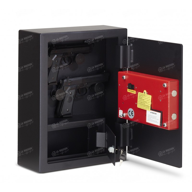Coffre de sécurité offrant une protection contre l’effraction, conçu pour le rangement de deux pistolets.