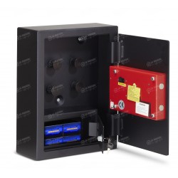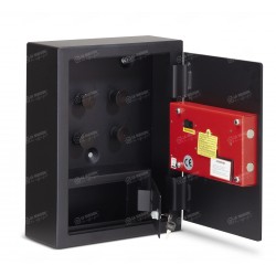 Dispose d’un compartiment intérieur verrouillable destiné aux munitions et de supports magnétiques réglables assurant le maintien optimal des armes.