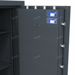 Equipé d'une serrure à clé certifiée selon la norme EN 1300 (2 clés incluses) et d'une serrure électronique certifiée selon la norme EN 1300 (piles incluses)